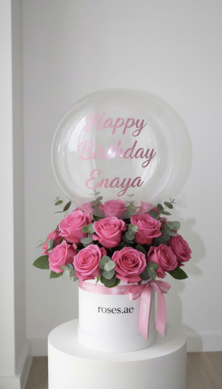 Bubble balloon box & pink roses