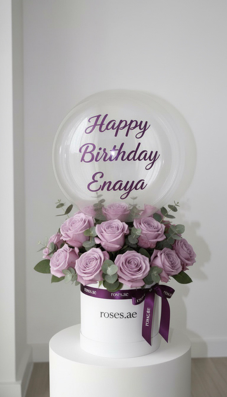 Bubble balloon box & purple roses